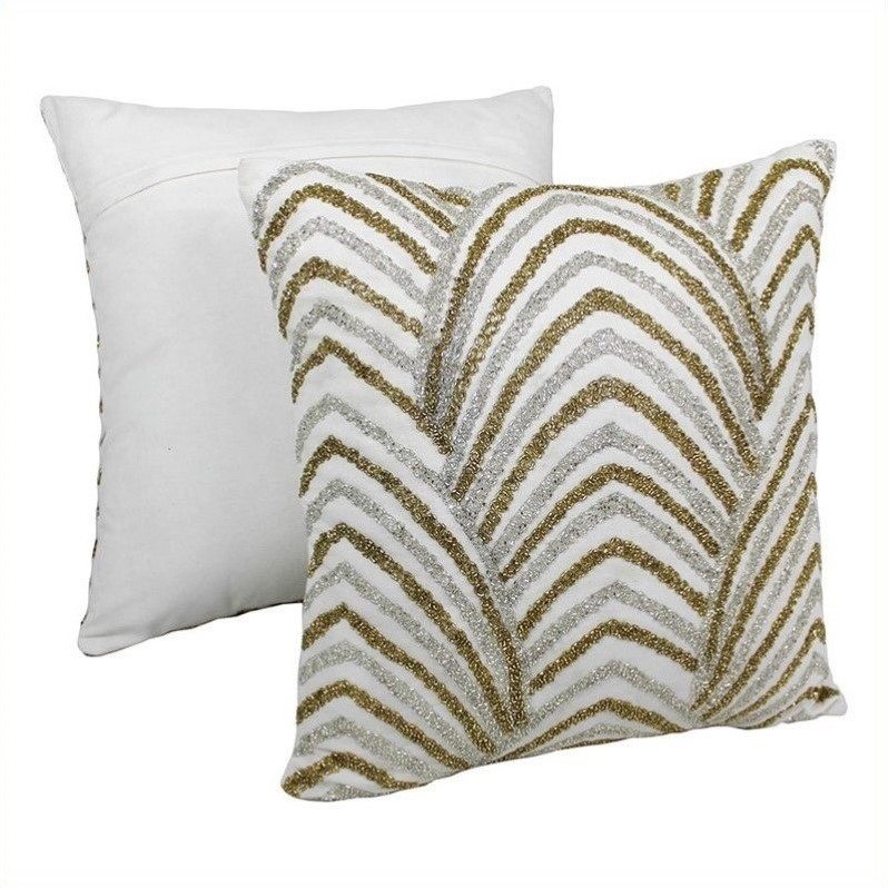 | Blazing Needles - Throw Pillows - IN2072820S2 - Add a touch of classic elegance to your home decor with these set of 2 throw pillows. These throw pillows features a beautiful, hand-sewn, beaded construction in a stunning gold and silver bead combination. Includes removable inserts for easy cleaning. Finish: ivory; Includes removable insert for easy cleaning; Made of 100% cotton; Hand-sewn and beaded; Comes in a set of 2. Specifications:Overall Dimensions: 7"" H x 20"" W x 20"" D; Product Weight: 1 lbs.