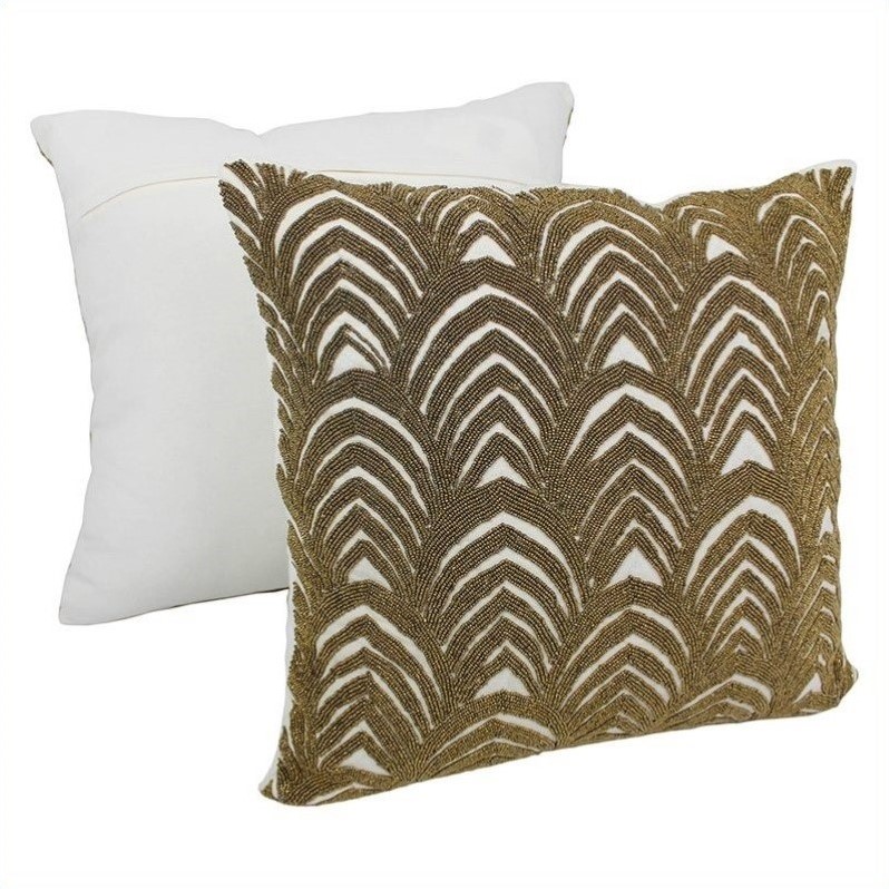 | Blazing Needles 20 inch Arching Fans Throw Pillow in Ivory with Gold Beads |