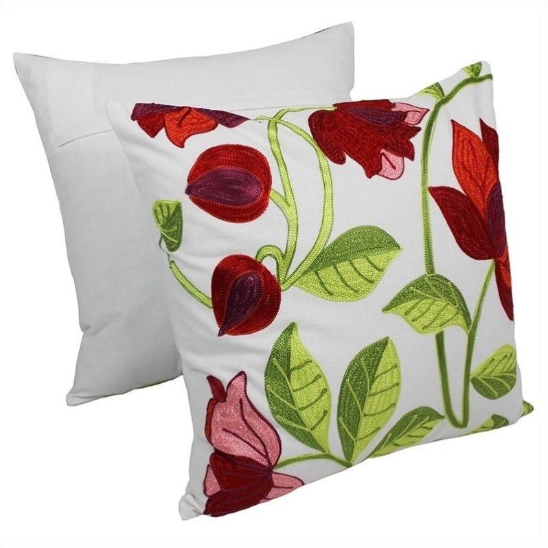 | Blazing Needles - Throw Pillows - FL620S1 - Add a touch of elegance and a vibrant splash of color to your home décor with these throw pillows. These throw pillows feature a striking floral embroidered design that fuses soft comfort and traditional handicraft into stunning beauty.Color: multicolorMade of 100% cotton linenTraditional handicraftStriking floral embroidered designRose hand embroideredFloral patternSpecifications:Overall Dimensions: 7"" H x 20"" W x 20"" DProduct Weight: 1 lbs