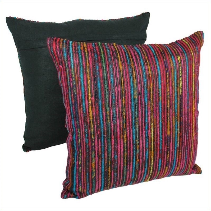 | Blazing Needles - Throw Pillows - IE20YRNS2RBWBK - Add a touch of rustic elegance and comfort to your home décor with this set of 2 throw pillow. This throw pillow features a classic, rustic yarn-threaded style and a stunning blue and beige color palette. Includes removable insert for easy cleaning.Finish: blackIncludes removable insert for easy cleaningMade of 80% cotton and 20% blended silkRainbow rustic yarn threaded styleComes in a set of 2Specifications:Overall Dimensions: 7"" H x 20"" W x 20"" DProduct Weight: 1 lbs
