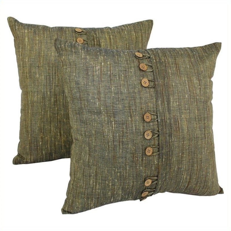 | Blazing Needles - Throw Pillows - IE20BTNS2SG - Add a touch of rustic elegance and comfort to your home décor with these throw pillows. These throw pillows feature a classic, rustic button style and two beautiful varieties of cotton fabric. Includes removable inserts for easy cleaning.Finish: sageIncludes removable insert for easy cleaningMade of 80% cotton and 20% blended silkRustic button styleTufted with 9 buttonsComes in a set of 2Specifications:Overall Dimensions: 7"" H x 20"" W x 20"" DProduct Weight: 1 lbs
