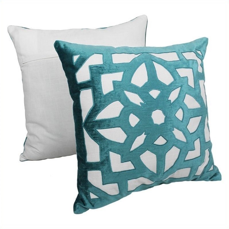 | Blazing Needles - Throw Pillows - FL320S1ABIV - Add a touch of elegance and a vibrant splash of color to your home décor with these throw pillows. These throw pillows feature a strking geometric velvet applique design that fuses soft comfort and modern style into stunning beauty.Finish: aqua blue and ivoryMade of 100% cotton linen and velvet appliqueModern styleStriking geometric designSpecifications:Overall Dimensions: 7"" H x 20"" W x 20"" DProduct Weight: 1 lbs