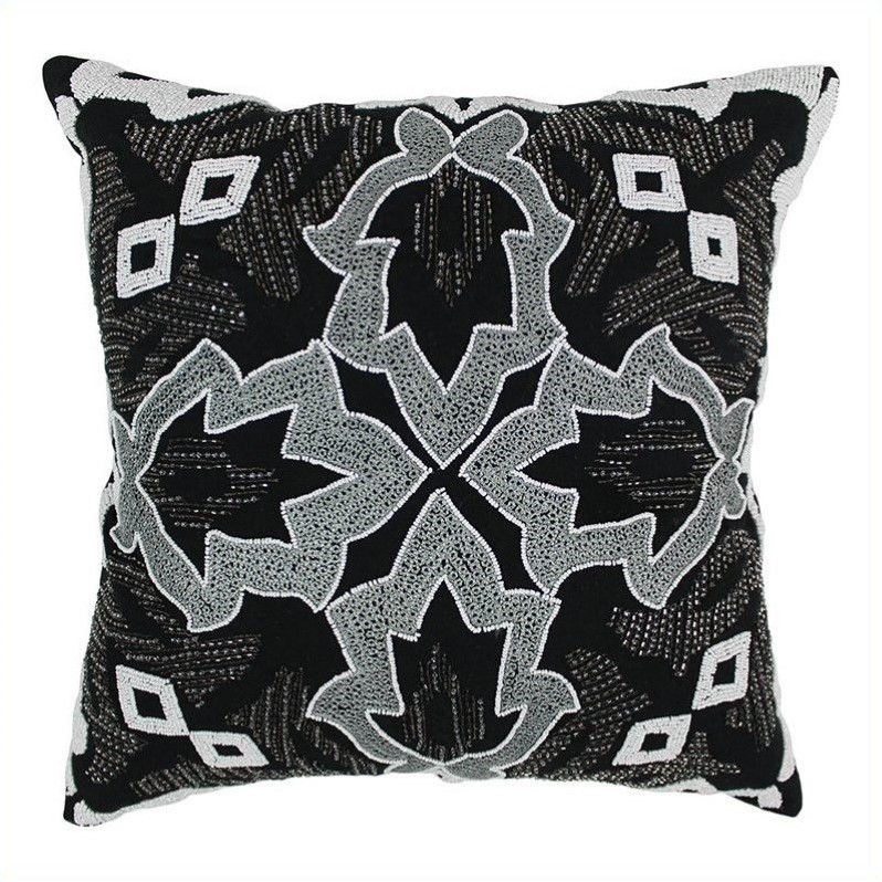| Blazing Needles Floral Throw Pillow in Black with White Beads |