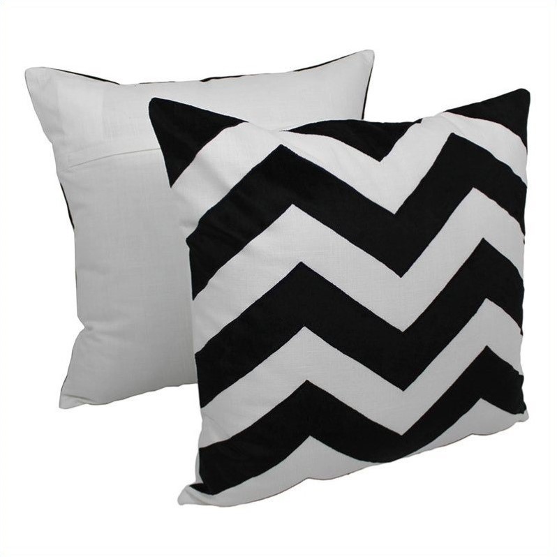 | Blazing Needles - Throw Pillows - FL120S1BKIV - Add a touch of elegance and a vibrant splash of color to your home décor with this throw pillow. This throw pillow features a sleek chevron velvet applique design that fuses soft comfort and modern style into stunning beauty. Includes removable insert.Finish: black and ivoryIncludes removable insertMade of 100% cotton and velvet appliqueModern styleSleek chevron designSpecifications:Overall Dimensions: 7"" H x 20"" W x 20"" DProduct Weight: 1 lbs