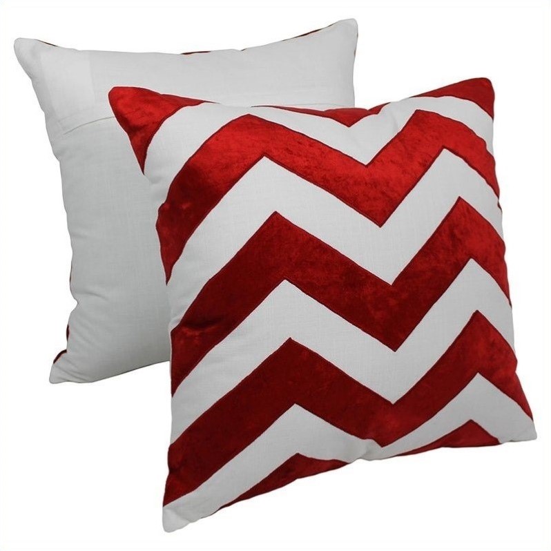 | Blazing Needles - Throw Pillows - FL120S1CRIV - Add a touch of elegance and a vibrant splash of color to your home décor with this throw pillow. This throw pillow features a sleek chevron velvet applique design that fuses soft comfort and modern style into stunning beauty. Includes removable insert.Finish: crimson and ivoryIncludes removable insertMade of 100% cotton and velvet appliqueModern styleSleek chevron designSpecifications:Overall Dimensions: 7"" H x 20"" W x 20"" DProduct Weight: 1 lbs