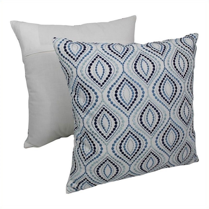 | Blazing Needles - Throw Pillows - FL720S1TL - Add a touch of elegance and a vibrant splash of color to your home décor with these throw pillows. These throw pillows feature a striking ogee embroidered design that fuses traditional handicraft and modern design into stunning beauty.Finish: ivoryMade of 100% cotton linenTraditional handicraftStriking blue embroidered designSpecifications:Overall Dimensions: 7"" H x 20"" W x 20"" DProduct Weight: 1 lbs