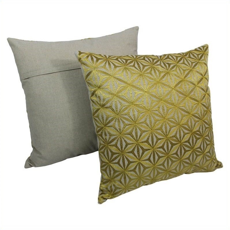| Blazing Needles - Throw Pillows - FL920S2GONT - Add a touch of elegance and a vibrant splash of color to your home décor with these set of 2 throw pillows. These throw pillows feature a striking 'diamond mosaic' embroidered design that fuses traditional handicraft and modern design into stunning beautyFinish: naturalMade of 100% cotton linenTraditional handicraftStriking diamond mosaic designGold embroideryComes in a set of 2Specifications:Overall Dimensions: 7"" H x 20"" W x 20"" DProduct Weight: 1 lbs