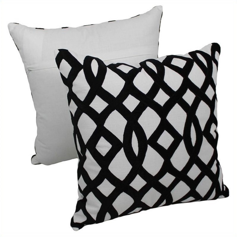 | Blazing Needles - Throw Pillows - FL220S2BKIV - Add a touch of elegance and a vibrant splash of color to your home decor with this set of 2 throw pillow collection. This throw pillow features an elegant trellis velvet applique design that fuses comfort and modern style into stunning beauty. Includes re Finish: black and ivory; Includes removable insert; Made of 100% cotton and velvet applique; Modern style; Trellis design; Comes in a set of 2. Specifications:Overall Dimensions: 7"" H x 20"" W x 20"" D; Product Weight: 1 lbs.