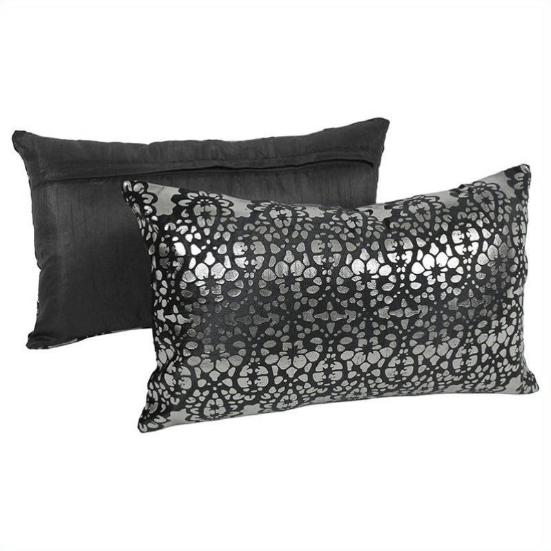 | Blazing Needles - Throw Pillows - IN212562012S2BKSV - Add a splash of colorful style and plush comfort to your home décor with this set of 2 throw pillow collection. This throw pillow features a striking velvet and foil applique construction in your choice of three colors. Includes removable insert for easy Finish: blackIncludes removable insert for easy cleaningMade of 60% cotton, velvet and silver foil appliqueComes in a set of 2Specifications:Overall Dimensions: 7"" H x 20"" W x 12"" DProduct Weight: 1 lbs