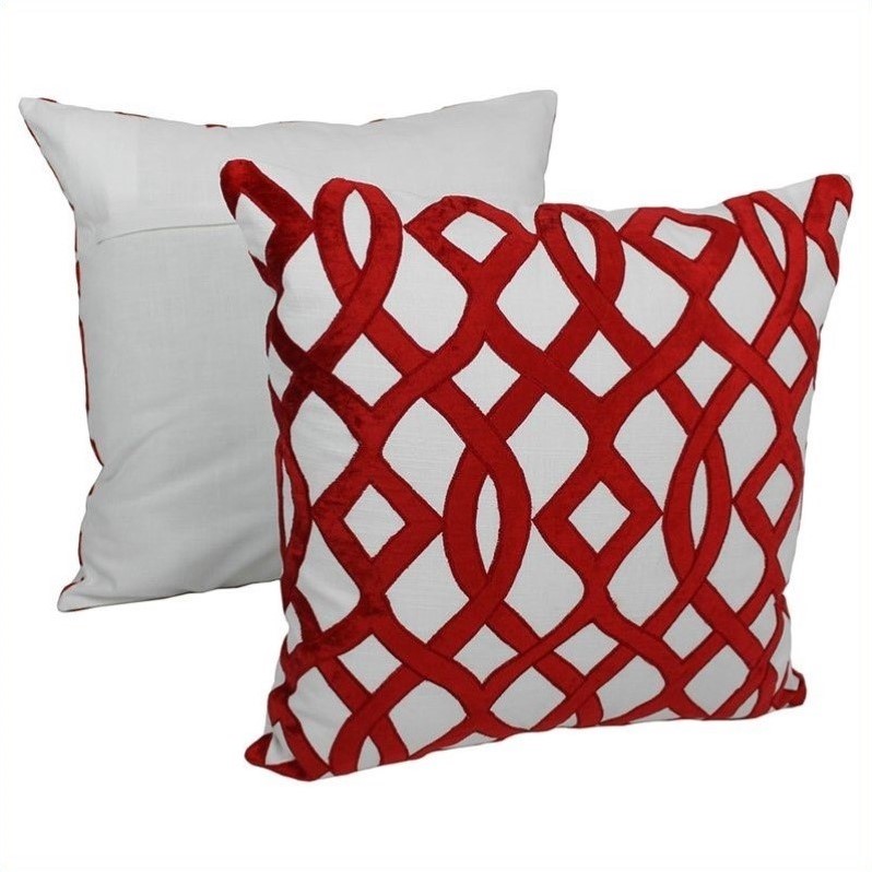 | Blazing Needles - Throw Pillows - FL220S2CRIV - Add a touch of elegance and a vibrant splash of color to your home decor with this set of 2 throw pillow collection. This throw pillow features an elegant trellis velvet applique design that fuses comfort and modern style into stunning beauty. Includes re Finish: crimson and ivory; Includes removable insert; Made of 100% cotton and velvet applique; Modern style; Trellis design; Comes in a set of 2. Specifications:Overall Dimensions: 7"" H x 20"" W x 20"" D; Product Weight: 1 lbs.